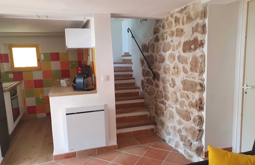 Gîte on two levels adjoining the owners' house. Ideal for two or a couple and two children. On the ground floor: * Independent entrance onto a small hall. * Two adjoining bedrooms including 1 double bed 160*200 for bedroom 1 and 2 single trundle beds 80*200 for bedroom 2. * Large adjoining shower room with WC. Access to the shower room via bedroom 2. On the lower level: * Small living room with an open kitchen. Private terrace and garden. Pétanque area. Swimming pool available from mid-May to the end of September (10 * 4 1.60/0.70 deep). Children's play area. Weekly rentals only in mid and high seasons. Low seasons: three-night minimum. Located in the heart of one of the most beautiful landscapes on the Côte d'Azur, Gîte Olidom welcomes you in a completely renovated building. Charming cottage carefully decorated with private outdoor spaces for your greatest comfort.