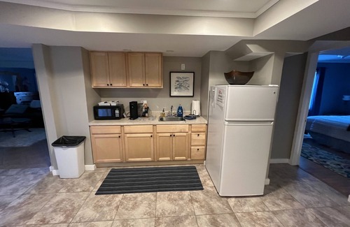 - This floor has 3 bedrooms, a full bath with laundry facilities, a mini-kitchen with sink, refrigerator and microwave, and a family room facing the lake with a 2nd 55" tv. There is also an alcove with a 2-twin bed trundle.
