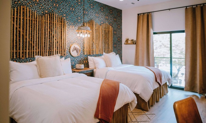 Designed for both comfort and style, this thoughtfully appointed suite features two queen beds, a private bathroom, and modern Hill Country charm.