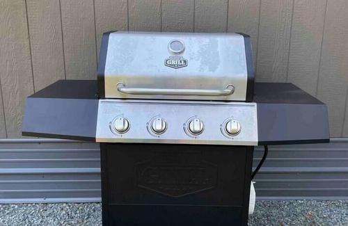 Lots of sunshine with a large front yard to relax in. With propane bbq & wood fire pit (fire wood provided).