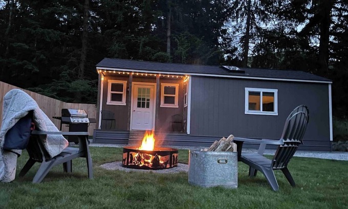 You'll love this unique and romantic escape. In a private getaway 500 sqft studio style Tiny House. This tiny house is new construction. In South Bellingham, close to Galbraith Mountain and just a few minutes from Historic Fairhaven, Lake Samish and Taylor Dock. It sits on a .25 acre lot with a private driveway. It has a kitchen complete with microwave, stove & oven.