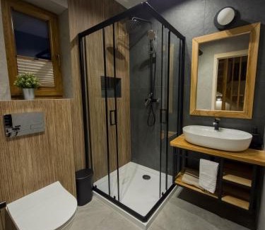 A recently renovated chalet, Galicówka na Górce Domki offers accommodations in Biały Dunajec. This property offers access to a balcony, free private parking, and free Wifi. The chalet has an outdoor fireplace and a hot tub. Offering a terrace and mountain views, the chalet includes 3 bedrooms, a living room, cable flat-screen TV, an equipped kitchen, and 3 bathrooms with a hot tub and a bath. Towels and bed linen are offered in the chalet. This chalet is allergy-free and non-smoking. Guests at the chalet will be able to enjoy activities in and around Biały Dunajec, like walking tours. Outdoor play equipment is also available at Galicówka na Górce Domki, while guests can also relax in the garden. Gubalowka Mountain Train Station is 5.3 miles from the accommodation, while Zakopane Railway Station is 6.7 miles from the property.