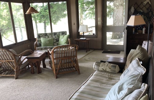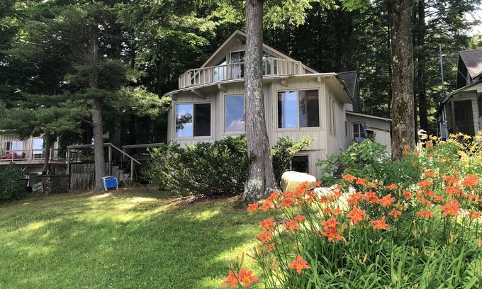 Beautiful view of lake from private Hardwoods Grove. Hard to find first-time rental. Three bedrooms two baths, classic furnishings typical of the Adirondacks. Sailing, canoeing, and kayaking (no motor boats allowed) and swimming is fantastic.. Peaceful summer days, in larger, comfortable cabin. First time rental.
