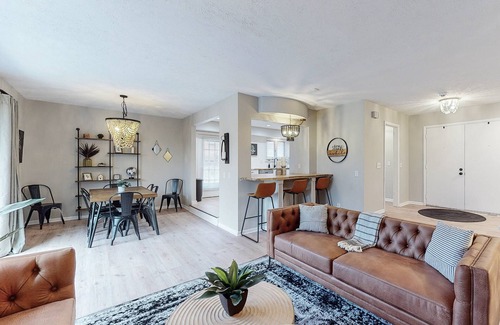 Welcome to our split-level haven, where the main level unfolds into a warm embrace of a stylish living room and kitchen. Sink into the plush comfort of the living room, adorned with tasteful decor that creates an inviting ambiance. The kitchen, equipped with modern appliances and ample counter space, beckons for culinary adventures or casual gatherings.