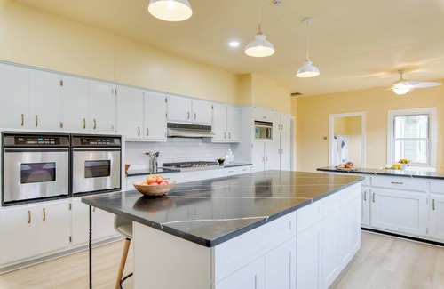 A variety of living areas, including a formal living room, family room, and sunroom, set the scene for quality time and togetherness. Cooking and dining are a delight at Game Farm Villa, with a fully equipped kitchen ready for your culinary creations and multiple dining areas for large crews. Whether you're preparing a home-cooked feast or indulging in a private chef experience arranged by AvantStay Concierge, every meal is a memorable event.