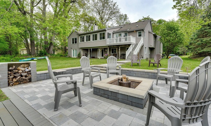 Game Room & Fire Pit: Canal-Front Commerce Home | House in Commerce Charter Twp