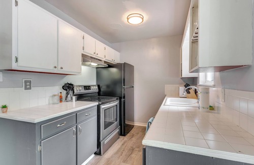 KITCHEN - Stove/oven, refrigerator, dishwasher- Cooking basics, dishware/flatware- Pod coffee maker (Keurig), microwave