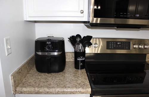Welcome to your retreat. Ideal for teams, families, and large groups, Sleeps 14 + crib. This home offers 2 living rooms and huge game room for entertainment, 3 Smart TVs . Fully equipped kitchen with a coffee bar. Laundry room, Office desk. Enjoy a fenced yard, outdoor seating, and plenty of parking.