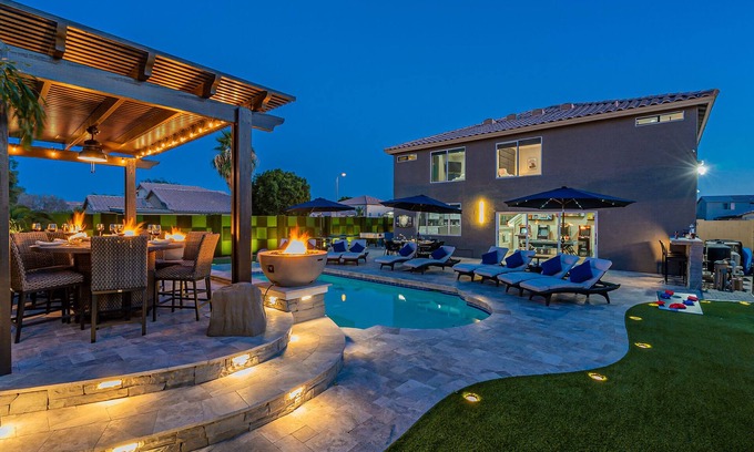 Amazing location a little more than 1 mile away from State Farm Arena, Westgate Entertainment District,Diamond Casino, Peoria Sports Complex, & Top Golf. The Stadium is a $142 million venue where the AZ Cardinals & Coyotes play football/hockey.The backyard has a HEATED Pebble-Tec POOL, Billiards, Mini-Putt-Putt, Jacuzzi, Ping-Pong Table, Fire Pit,BBQ Grill, Foosball, & Jinga. Each Room has Smart TVS WITH CABLE. Home is internet/Wifi ready & has 24 hour check-in w/ a Smart Lock (No Key Needed).