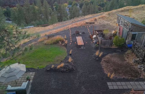 Nestled in the historic South Hill of Spokane, this artistic studio offers an enchanting retreat for guests. With a cozy living room featuring a queen bed and a futon, along with a well-equipped kitchen, this amazing property provides all the comforts you need. Enjoy the convenience of free high speed WiFi, a hair dryer, Pillow Top oversized queen, & Fireplace. Outside guests can enjoy a private hot tub, a BBQ, lighted courtyard, Sunset observation patio. The backyard is a social area for all guests & is the heart of the property offering, a 12 foot table, huge firepit, bistro lighting all set in front a majestic view over the city's west ravine. Book now and enjoy everything this perfect retreat has to offer.