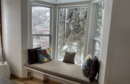 The Garden Home is only 4miles north of downtown Durango and has a park like setting on an acre of land. This home is a wonderful relaxing getaway with the exterior features such as a large deck, HOT TUB, BBQ grill, and fire pit, all for personal use. The main bedroom and bathroom are on the first floor and a spiral staircase leads to 2 additional bedrooms and a bathroom on the second floor. It's the perfect home for any season, as you can enjoy the flowerbeds in the summer or snuggle up by the fireplace in the winter. Home has central AC for those hot summer months and a wood burning stove stocked with wood for you during the winter months. Bonus is that it's only 20min to Purgatory! The host occasionally stays next door.