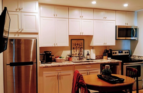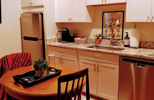 Garden level carriage house nestled in the heart of the vibrant Starland District, aka Thomas Square, Southern Living Magazine's #1 rated neighborhood, with nods and write-ups from the New York Times, LA Times and more. You'll be surrounded by art, music, students, a little grit, and the food...oh the food. Roll out of bed and stroll to numerous coffee shops and eateries. Walk to open air music, bars, nationally recognized, inspired restaurants and cafes all a block or so away, including Brochu, opened by a Michelin star chef, Ukyo Japanese fare, the famous Starland Yard with a fresh rotation of food trucks and live events, and so many more great joints just steps away. Grab a live show at Victory North, The Wormhole or Front Porch Comedy Club. Close to everything Savannah's known for, about a 15 minute bike ride downtown to River Street and 5 to famous Forsyth Park. This tucked away, garden-level guesthouse cottage in Savannah offers a 1 bedroom queen with plush, hotel-quality bedding, a living room full-sized sofa bed, TVs in both rooms with premium cable and all the main streaming options. Amenities include AC/ heat, WiFi, washer/ dryer, new appliances, fully equipped kitchen, plenty of linens, blackout curtains, soaps and cleaning supplies. The bathroom includes a walk in shower, hair dryer, towels, soaps and toiletries. Shared courtyard space with couches and chairs, outdoor fans, cafe lights for evening aperatifs. This is a really special, unique area loaded with gorgeous historic homes and buildings, lots of historic preservation and restoration happening, ghost tours, giant live oaks covered in moss. Come enjoy our lively, vibrant area, live music and eats!