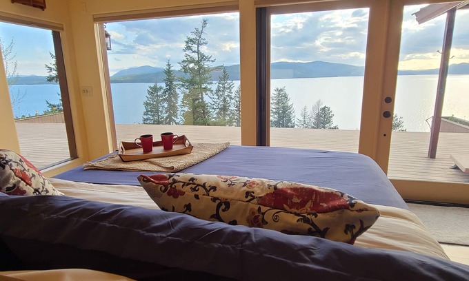 This intimate cliffside home is built on mountainside rock overlooking Lake Pend Oreille and the surrounding mountains. Be embraced by the water, mountains and animals that make it their home.