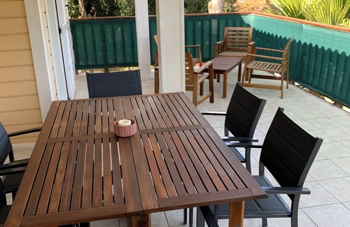 It is air-conditioned and has everything that can make a pleasant stay: television, dishwasher, washing machine, Nespresso coffee machine, kettle, toaster... in short, fully equipped with all kinds of glasses to drink whatever you want 😉