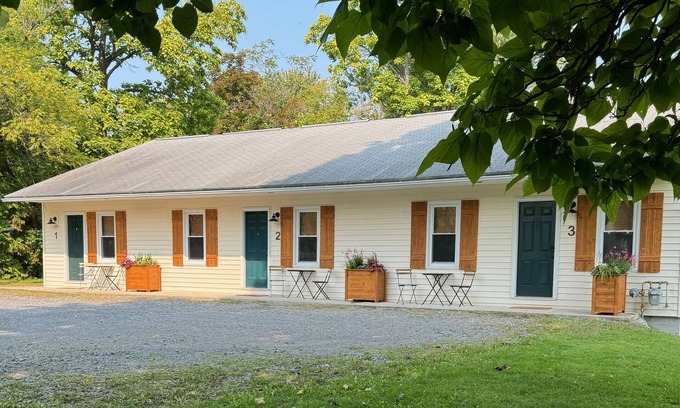 Located right at the village line on route 20, this former roadside motel has been updated to a modern studio. The bedroom has a queen bed, an updated and well-appointed bathroom, and a whisper-quiet mini-split to control the temperature. Relax at this peaceful place to stay, just a short 15-minute stroll into the village center!