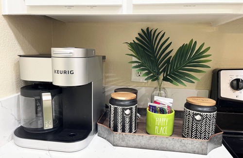 The kitchen is fully equipped. Utilities included. You are welcome to use anything in the kitchen. Toiletries are provided for your convenience. The swimming pool key is located at the key holder in the kitchen. Feel free to use the amenities. Utilities included. There are 2 assigned parking spots