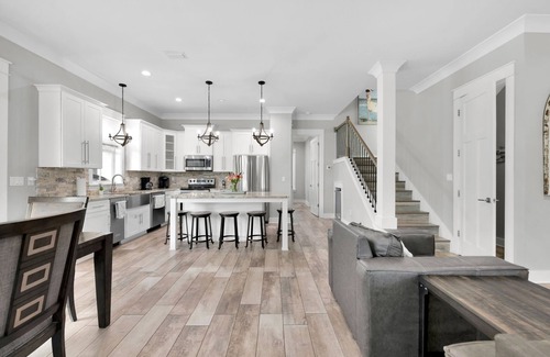Contemporary open living with spacious seating area for family gatherings. Meals can be enjoyed at the breakfast bar, or the dining which has seating for 8. The sizable kitchen is fully equipped.