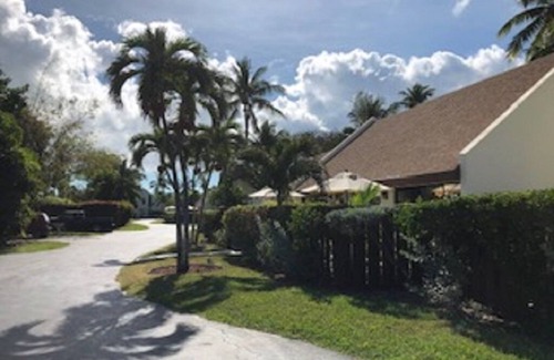 Private, secluded, gated beachfront Villa with private beach, heated pool, bar/restaurant. Dedicated area for tanning also has a fenced private patio with umbrella, table and chairs. Amenities include full kitchen, living room, two bedrooms, cathedral ceiling, pullout couch for two more people to sleep, also internet, a/c, lovely surroundings with palm trees and flowers. Onsite free parking. Nearby City Market, restaurants, coffee bar, liquor store all within five minutes walk.