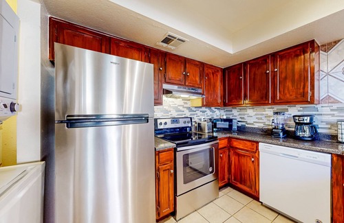 The condo itself is fully furnished for contemporary home comfort. The full kitchen makes it easy to whip up all your favorite meals. A smart TV and plush sofas welcome casual downtime in the living room. Additional perks include central air-conditioning, free WiFi, and a private washer/dryer.
