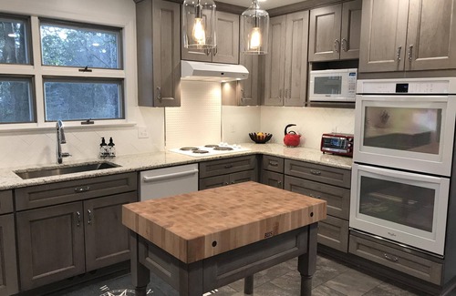 In addition to the sun and pool patio lounge area, there are 2 enclosed sun porches for your getaway, one of which is air conditioned and furnished for your comfort and relaxation, and the other which features a large family style teak table to gather your posse around to enjoy a fabulous group meal. There is a cavernous Great Room saturated in sun light in which you can chill, kick your feet up and spend a lazy afternoon with a great book from the house library collection, or else decide to relax in the cozy paneled den outfitted with a large screen Smart TV to curl up and watch a movie. Jump in, or watch the house expert, craft a culinary masterpiece in the newly renovated Chef's Kitchen for an epicurean experience to match your mood after getting into vacation mode in this fabulous location.