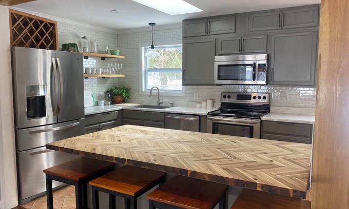 Come stay in this bright, beautiful 3 bedroom house located in a quiet neighborhood with a 3-6 minute drive from all of Manchester. the open concept kitchen/living/dining room is a great place for everyone to gather and connect. Or choose to Relax in the sunken den with a 70” curved modern big screen tv.