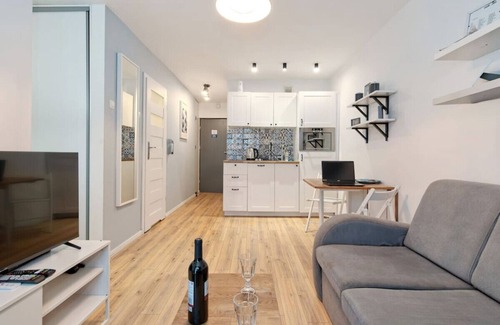 Welcome to your ideal 26m² space, managed by Rentujemy, designed to comfortably accommodate up to 4 people. Located on the 3rd floor, this cozy apartment features two inviting rooms, including one with a queen bed and another with a sofa bed. Whether you're here for work or leisure, the working desk and fast Wi-Fi ensure you stay productive, while the smart TV is perfect for unwinding after a busy day. Step out onto the balcony and enjoy a breath of fresh air.
