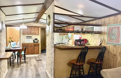 Gene's retreat is the perfect combination of quiet country living for long or short term getaways. It's an older trailer with charm. The floors lean just ever so slightly in spots and the water takes a minute to heat up, but thats what gives this home away from home it's character!