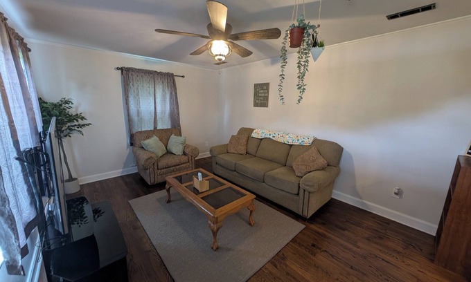 Welcome to General Retreat! You and your family will thoroughly enjoy your stay here. It's in a nice and peaceful area, centrally located right outside historic Ringgold, GA, near the TN state line. You will be within driving distance of many cities in our area. Just 25 minutes from downtown Chattanooga, the Scenic City! This small home is very cozy and comfortable for your family. If you love history, this is a must-visit stay. The General War Monument is just across the street from this home.