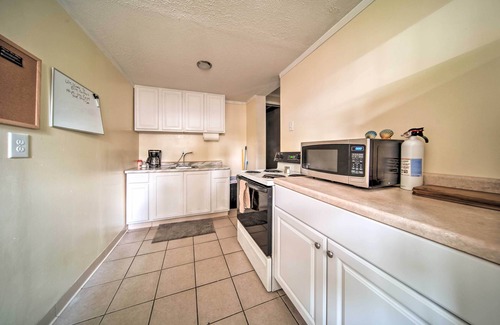 KITCHEN: Well-equipped, tile floors coffeemaker, toaster, oven/stove, microwave, refrigerator, dish rack
