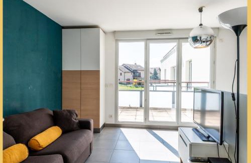 Geneva Side I T2 I Ferney-Voltaire offers accommodations in Ferney-Voltaire, 3 miles from PalExpo and 3 miles from CERN. This property offers access to a balcony, free private parking, and free Wifi. United Nations Geneva is 3.6 miles away and Cornavin Train Station is 4.8 miles from the apartment. The apartment consists of 1 bedroom, a living room, a fully equipped kitchen with an oven and a coffee machine, and 1 bathroom with a bath and a hair dryer. Towels and bed linen are provided in the apartment. The accommodation is non-smoking. Jet d'Eau is 5.7 miles from the apartment, while St. Pierre Cathedral is 6.2 miles away.