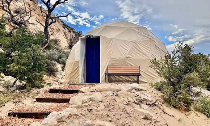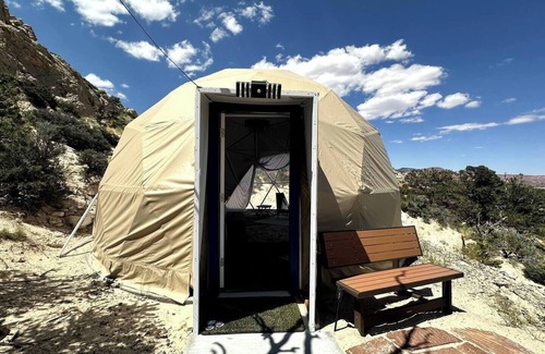 Experience a unique blend of camping & modern luxury in our custom-built Geodesic Dome with a view! Enjoy nature's serenity while indulging in modern comforts: king-sized bed, kitchenette, & climate control. This dome combines natural charm with modern comforts, creating an unforgettable stay. Whether seeking adventure or relaxation, our dome provides a connection to nature within an unforgettable get-away. It's glamping at its finest, offering a serene, authentic, & luxurious escape. The space Private Glamping site nestled among the junipers and Pinon pines in the desert landscape backing up to boulder mountain forrest service land. Each unit has a king sized bed, AC / Heating, and a separate private bathroom with shower. There are 5 other glamping sites spread out on this 10 acre property, so if you would like to rent more than one, please see our other listings or just ask!