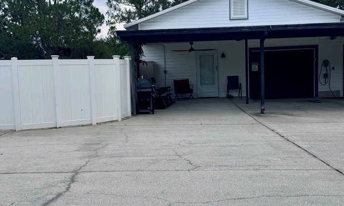 Located 5 miles directly south of Lakeland Airport. FREE High Speed WiFi. This is a guest cottage next to the main house. This offers economical stay with the privacy of a house. This property sits on 2 acres in a beautiful and quiet subdivision. 1 bedroom 1 bath with washer and dryer, fully stocked kitchen including Keruig, traditional coffee maker, deep fryer, air fryer, crockpot, microwave, fridge with ice maker and water softener system. If we don't have it just ask. Lakeland is centrally located between Tampa and Orlando minutes from I-4 .We are located just minutes from Plant City and the Strawberry Festival. Close to Walmart, Publix, local gyms, golf courses, mall,movie theater and bowling alley. Our property is located in a very nice and quiet neighborhood on a dead end street perfect for doggy walks or some quiet solitude. Large open front yard.