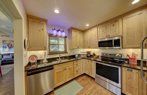 This spacious space sleeps up to six with one queen-size bed, two full-size beds and a queen-size sleeper sofa.