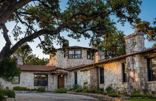 Built in the 1930s of native stone and cedar, this hilltop retreat with a breathtaking view is perfect for up to 24 people.