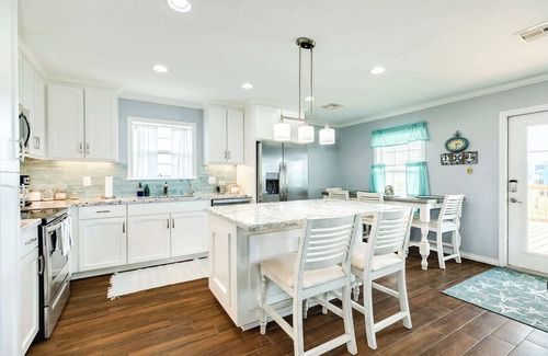 Spend your days sunbathing on the nearby sandy beach, exploring the wildlife refuges, or taking a day trip to Galveston Island. After your adventures, return to this seaside cottage for some chill and grill time.