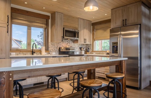 Back at the home, find your inner peace out on the picturesque back deck, losing yourself in the pages of a good book or dining al fresco after the barbeque master among you whips up a family style feast on the grill. The built-in cedar hot tub will help ease all of your cares away as you sip on a refreshing beverage and converse with loved ones, the outdoor shower allowing for a convenient rinse off before heading back inside. As the sun begins to set, gather the group around the firepit for a round of toasted treats while you regale one another in stories from your newest adventures.