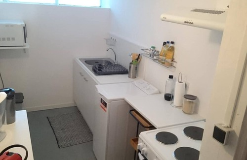 The kitchen is equipped with an oven, a stovetop, and a refrigerator, as well as a coffee maker, an electric kettle, and a microwave. Connect to the free WiFi, or get cozy in front of the TV. Bathroom amenities include towels, toilet paper, and soap. And you won't have to pack extra clothes, because you'll also have access to laundry facilities. Other amenities at this 1-bedroom, 1-bathroom rental include bed sheets, an ironing board, housekeeping, and heating.