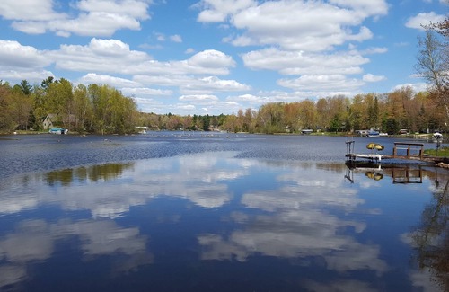 This cottage is the perfect getaway for anyone who wants to experience the beautiful North Woods of Wisconsin, with a number of modern amenities including WIFI.. Property is settled at the end of the road on a quiet cul-de-sac this cottage is directly on the snowmobile and ATV trails. This 2 bedroom 1 bath vacation home has 100 ft of water frontage with a boat launch only a short block away. There is also a tiny camper available for an extra nightly fee of $50. Camper has a full sleeper sofa, microwave, fridge, TV. Chute Pond is a 421 acre, fully recreational lake with maximum depth of 19', and has 8.23 miles of shoreline. Abundant wildlife, swans, bald eagles, ducks & geese. Great fishing! Fish right off the dock and catch your very own Fish Fry! Very scenic waterway with islands & rock formations. In the summer time the tubing, boating, swimming, fishing, and cliff jumping cannot be beat! In the winter the ice fishing and hunting are awesome and the snowmobile trails are next to none with some of the states BEST! Bring your ATV'S, the roads are all open for ATV use with over 200mi of trails! The bars and restaurants are all accessible via snowmobile, boat or ATV. In the winter, you can snowmobile right out across the frozen pond!