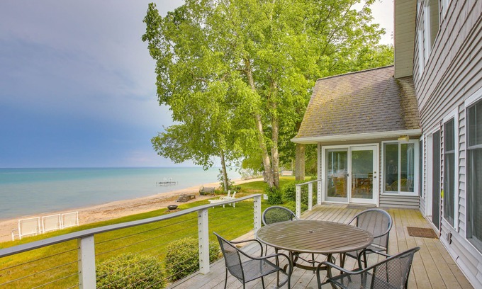 Discover lakefront bliss at this peaceful 4-bedroom, 5-bath Northport vacation rental designed to be your idyllic home base. Start each day admiring the sunrise over the Grand Traverse Bay from the sunroom, then head out to explore local parks, check out wineries in the area, or tour historic Fishtown sites. Return home to rest in any of the living spaces in the Main and Guest houses or gather around the fire pit with your crew. If you’re seeking serenity and adventure, this gem has it all!