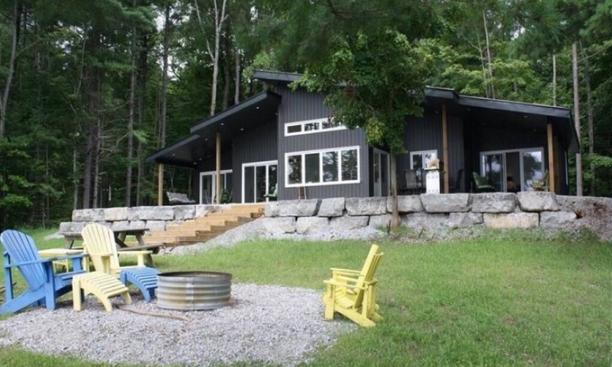 Luxury cottage on the shore of the west basin of beautiful Sharbot Lake. Newly built in 2024, this cottage has a bright modern floor plan with open concept living spaces, three comfortable bedrooms, and two bathrooms. With 20 total acres to explore, Gezellig Cottage is the perfect nature retreat.