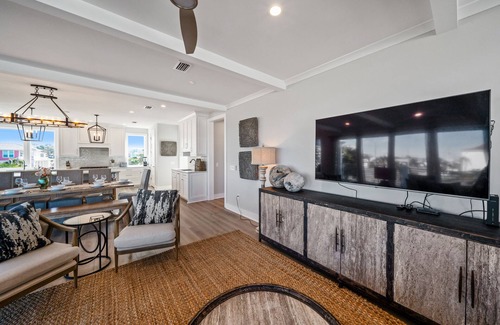 Located right on Saint Joe Beach, Ginger Snap offers a tranquil beachfront experience. Enjoy the exclusivity of a private, second-floor pool with ocean views, ample space for 20 guests on tiered decks, and pet-friendly options so everyone can join your peaceful getaway.