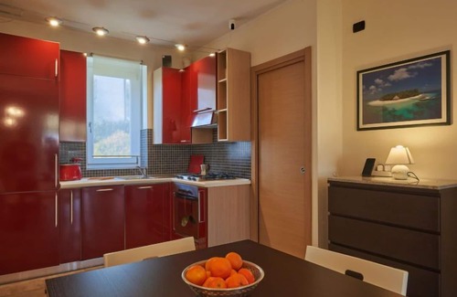 "Girasole", 3-room apartment 65 m2, on the ground floor. Bright, comfortable furnishings: living/dining room with dining table and TV. Exit to the garden. 1 double bedroom. Exit to the veranda. 1 small room with 1 x 2 bunk beds. Exit to the garden. Small, open kitchen (oven, dishwasher, Gas stove, 4 gas rings, toaster). Shower/bidet/WC. Gas heating. Large garden 120 m2. Terrace furniture, electric barbecue (portable), deck chairs (2). Marvellous view of the mountains. Facilities: washing machine, children's high chair, baby cot for up to 2 year olds, hair dryer. Internet (WiFi, free). Garage on the property (1 car), height 210 cm, width 270 cm. Please note: non-smokers only. Maximum 1 pet/ dog allowed. Private entrance. IT013249C26CVJ3FQN