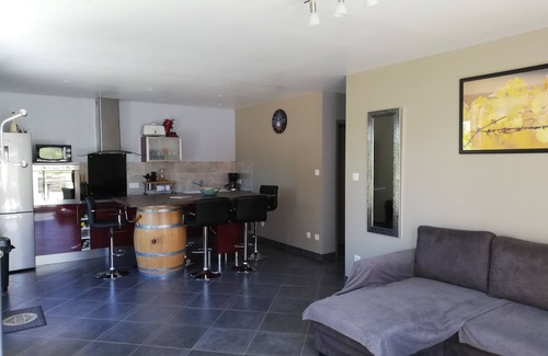New gîte, suitable for 6 people, situated away from the village, overlooking the Romanesque church. Between land and sea, a few steps from the Canal du Midi, the city of Carcassonne, Cathar castles, Corbières and Minervois, beaches of Gruissan, Narbonne beach and Port La Nouvelle.