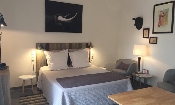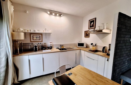 You will find a comfortable bed in 160, tv, air conditioning, kitchenette with hob, fridge, microwave, kettle, coffee maker and nespresso.