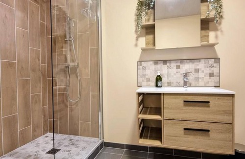 Independent bathroom, with shower 1.50x090m and WC. Reversible air conditioning. WIFI (fiber). Private parking in front of the cottage for one vehicle, no private outdoor space. All-inclusive cottage (energy charges, sheets, towels and end-of-stay cleaning).