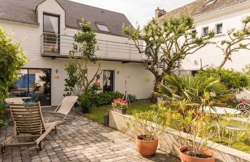 Quiet, in the village of Batz sur Mer (shops and restaurants 300 m) and 500 m from the beaches, set of 2 small gites (one on the ground floor, one upstairs) located near the owners' house. Private terrace (West) of 20 m², access to the flowered enclosed garden of 80 m² (shared). Gîte 'Côté Jardin' (one level): living room/living room with kitchenette, large bedroom (140x200 bed) with adjoining shower room/wc. Additional equipment: wifi, complete baby equipment, washing machine and barbecue (shared). Included: aerothermal heating, electricity, sheets and towels. Not included: tourist tax. Compulsory cleaning fee for professional customers (65€). Animals: €100 deposit. Guérande/La Baule 10km. Unless stated, services such as cleaning, bed linen, towels etc. are not included in the price of this rental. If pets are allowed (information in the advertisement), charges may be applicable. Only equipment mentioned in this advertisement are present. Equipment not mentioned are not considered to be present.