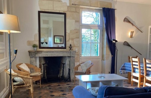 This beautiful 17th century stone country house is set in a magnificent enclosed private park (6500 sq yards) with a view over the Dordogne river and Gustave Eiffel designed iron bridge in the 19th century (Railway is on other side of property). Close to the town, it has many walking paths near by. It offers patio, terrace, swings, sandpit and tennis table. WIFI and free calls to landlines. Kitchen (microwave, washer/dryer), lounge with DVD player, 16 th century wood panelled dining room typical of "école de Bordeaux". 3 bedrooms ( 1 double, 4 single beds), bathroom, separate wc. Gas central heating. Sheets, kitchen linen and bathroom linen to rent, house cleaning in option.