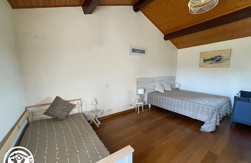 House comprising 2 gîtes on a 15 hectare property (equestrian estate, owners' horse breeding). Gîte composed of a living room/living room/kitchen, 2 bedrooms (1 160 cm bed) (1 160 cm bed and 1 90 cm trundle bed), a bathroom with shower and bathtub, a separate toilet. Wireless. Shared on-site leisure activities: ping-pong table, outdoor games... Private grounds of 150m² with garden table and benches, barbecue, deckchairs. Heating included, sheets and towels provided. In addition: cleaning fee €50/stay. Pet: €10/pet/night. Tourist tax. Optional services to be paid on site and reserved before your arrival: - Pets: 10.0€ per day - End of stay cleaning: €53.19 per stay Property managed by a professional. Unless stated, services such as cleaning, bed linen, towels etc. are not included in the price of this rental. If pets are allowed (information in the advertisement), charges may be applicable. Only equipment mentioned in this advertisement are present. Equipment not mentioned are not considered to be present.