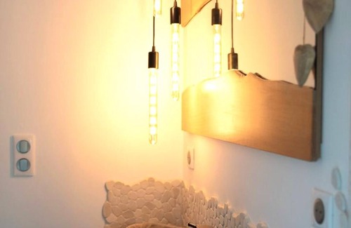 On the ground floor: you will be surprised by the atmosphere and the attention to detail. The American kitchen is integrated into the vast living room and comfortable lounge area, equipped with high-tech equipment. And for fans, a billiard table. The height under the roof has been preserved on the mezzanine, and as decoration, musical instruments. The bathroom (with closed toilet) has also been carefully decorated, Italian shower and sink by the artist DESIGN BY MITCH.
