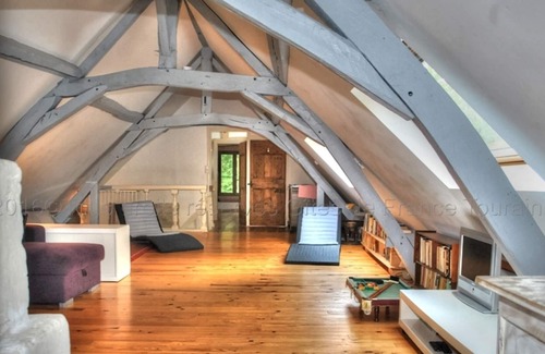 In the heart of 4 ha of forest and meadows, 3 km from Gizeux, the Moulin Raimboeuf is the guarantee of "relaxation, nature and discovery" holidays, not far from the Royal River, the AOC vineyards, the Loire castles. ground floor : living room-lounge (piano, restricted phone), kitchen, 1st bdrm (140 cm bed), bath/wc. Floor: large living room/bedroom on landing (1 bed 90 + 1 sofa bed + 1 sofa bed BZ 160), 2nd bedroom (bed 140, 2 beds 90), 3rd bedroom (bed 140, bed 120), bath, wc. Baby cot. Central heating (18 €/day). 4 ha garden, shelter, table tennis, outdoor games. Included in the price: sheets/beds made, bathroom linen, final cleaning (possibility of an extra €50 if the house is very dirty when the tenants leave) and firewood. PLEASE NOTE ONLY SMALL DOGS AND CATS ARE ACCEPTED. This comfortable old mill, in the heart of the forest, is accessible by a municipal road. It will offer you calm and rest in a protected environment. Microwave, Washing machine, Dishwasher, Telephone, Barbecue, Television, Fireplace (or insert), Garden furniture, Local produce, Comfort, Freezer/Fridge-freezer, Sheets included, Baby equipment, Parking, Terrace, Garden , Animals accepted, DVD player, Bathroom linen included, End of stay cleaning included, Detached house, Opt. bathroom linen, optional sheets. Unless stated, services such as cleaning, bed linen, towels etc. are not included in the price of this rental. If pets are allowed (information in the advertisement), charges may be applicable. Only equipment mentioned in this advertisement are present. Equipment not mentioned are not considered to be present.